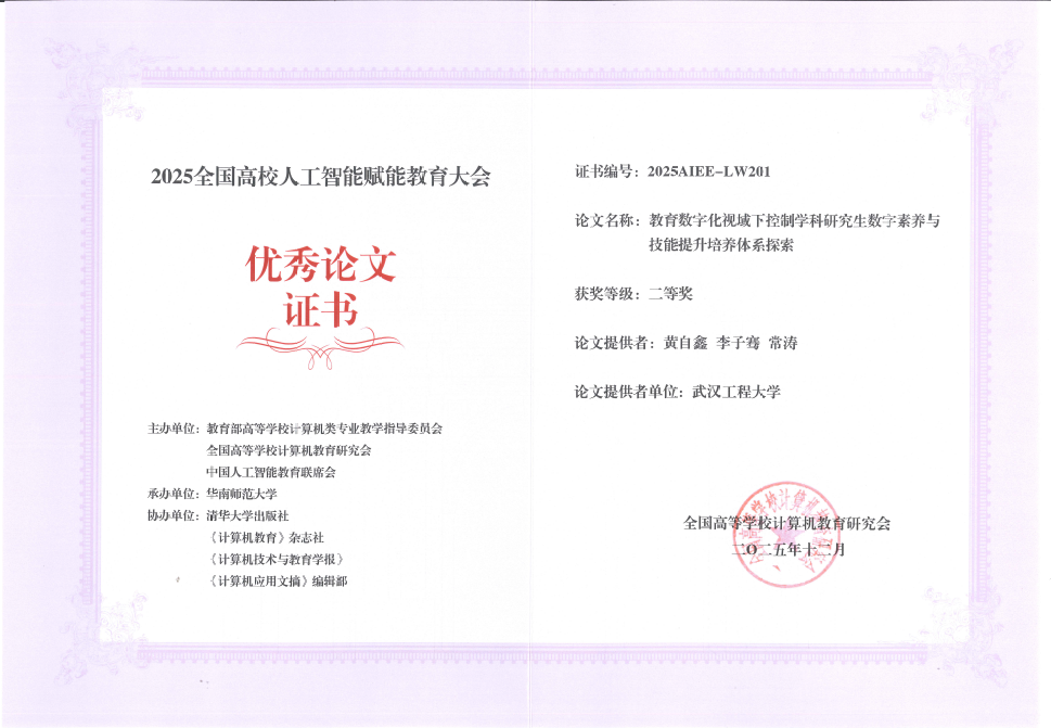本网讯(通讯员 李子骞 常涛)12月19日至21日,由教育部高等学校计算机类专业教学指导委员会、全国高等教育计算机教育研究会、中国人工智能教育联席会联合主办的“2025全国高校人工智能赋能教育大会”在广州召开。我院黄自鑫教授团队受邀参会,并凭借在教育数字化转型与智慧教学改革方面的突出成果,荣获大会“优秀论文二等奖”与“优秀案例三等奖”各1项。