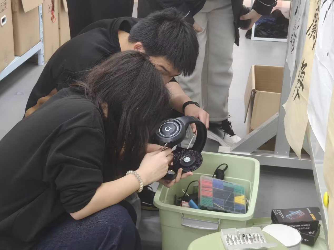 活动伊始,电器维修队志愿者对心语小屋进行了合理规划,将场地划分为维修服务区与包饺子体验区,队员们以饱满的热情迎接前来送修电器的师生。“老师,您这个电水壶是加热管接触不良,我重新焊接一下就能用了。”面对各式各样的故障电器,志愿者先仔细询问情况,再通过专业仪器检测定位问题。对无法当场修复的设备,志愿者详细登记了信息、故障情况及联系方式,后续免费为师生完成维修。