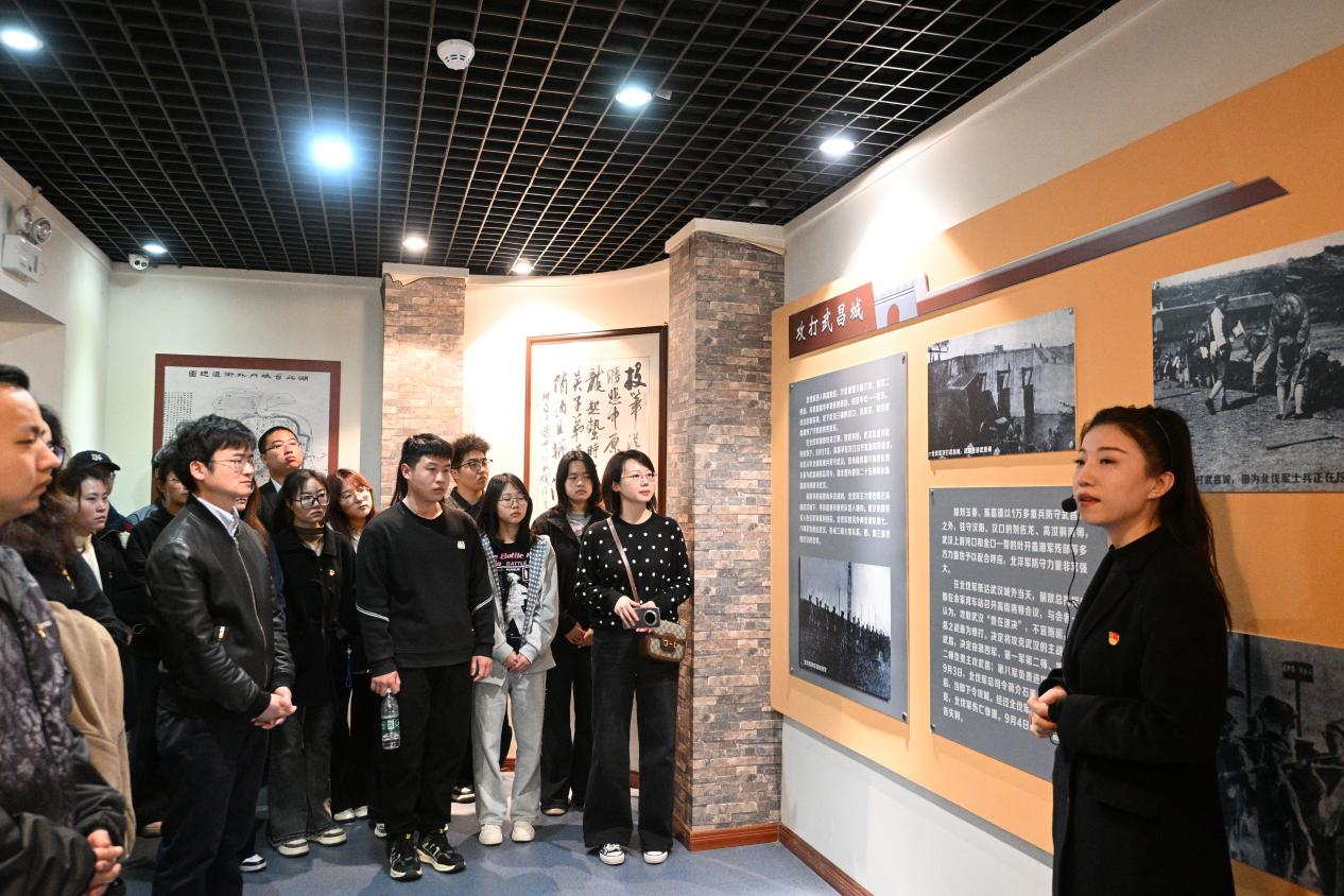 苍松翠柏掩映下的烈士陵园庄严肃穆。活动伊始,全体人员列队进入叶挺独立团武昌纪念馆。大家跟随讲解员的叙述,透过一幅幅珍贵的历史图片、一件件厚重的革命文物、一段段详实的文献记载,重温了以叶挺将军为团长的独立团在那段烽火岁月中,为北伐战争胜利、为民族独立和人民解放事业所立下的不朽功勋。革命先辈们坚定的理想信念、不畏牺牲的英勇精神和深厚的家国情怀,深深感染了在场的每一位师生党员。