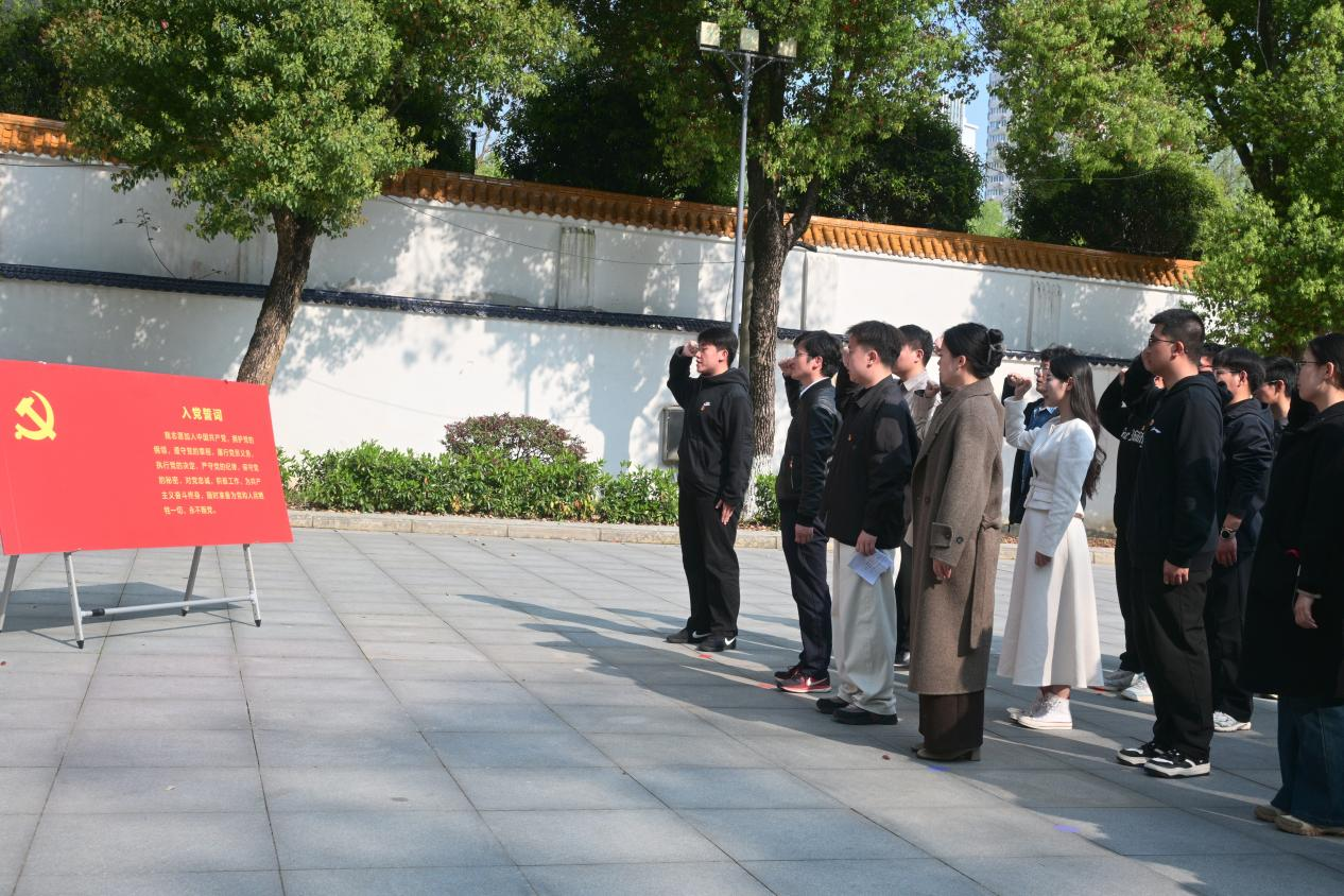 在庄严肃穆的纪念碑前,面对鲜艳的中国共产党党旗,全体师生党员重温入党誓词,激励青年学子在新时代赓续红色血脉,铭记初心使命。