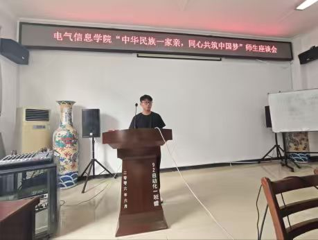 李松颉代表少数民族同学发言,他表示,作为新时代青年,要将个人理想融入国家发展大局,努力学习专业知识,积极参与社会实践,提升综合素质,以实际行动践行“中华民族一家亲”的理念,共同谱写民族团结进步的新篇章。