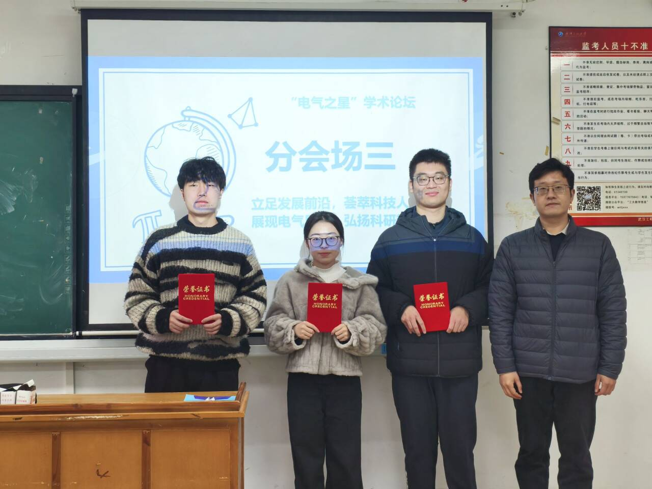 开幕式后,学院研究生通过学术海报展示和报告,集中展现了电气学子在人工智能、集成电路、新能源等前沿领域的创新成果。200余名研究生参与本环节活动,并进行学术交流探讨。辅导员郭星锋为5名学术海报优秀奖和12名学术报告优秀奖颁奖。