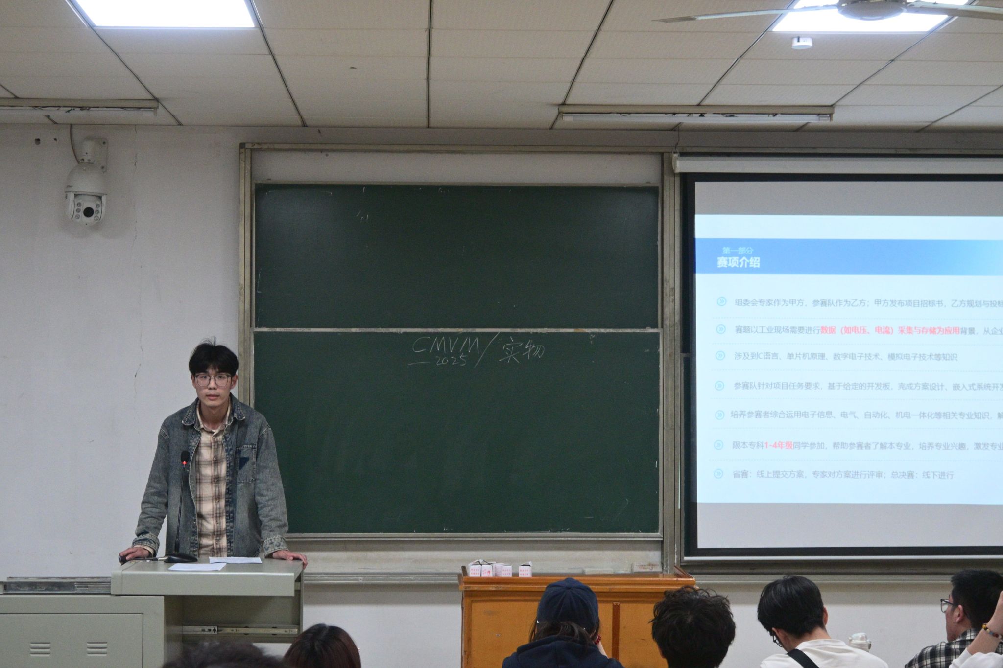 李自成介绍了我校“西门子杯”竞赛的发展历程和成绩,鼓励同学们借助竞赛平台,将专业知识与实践应用紧密结合,通过工程化案例规划与实施,培养解决复杂工程问题的思维与能力,提升动手能力和团队协作能力,为未来就业、升学增添一份亮眼的成绩。