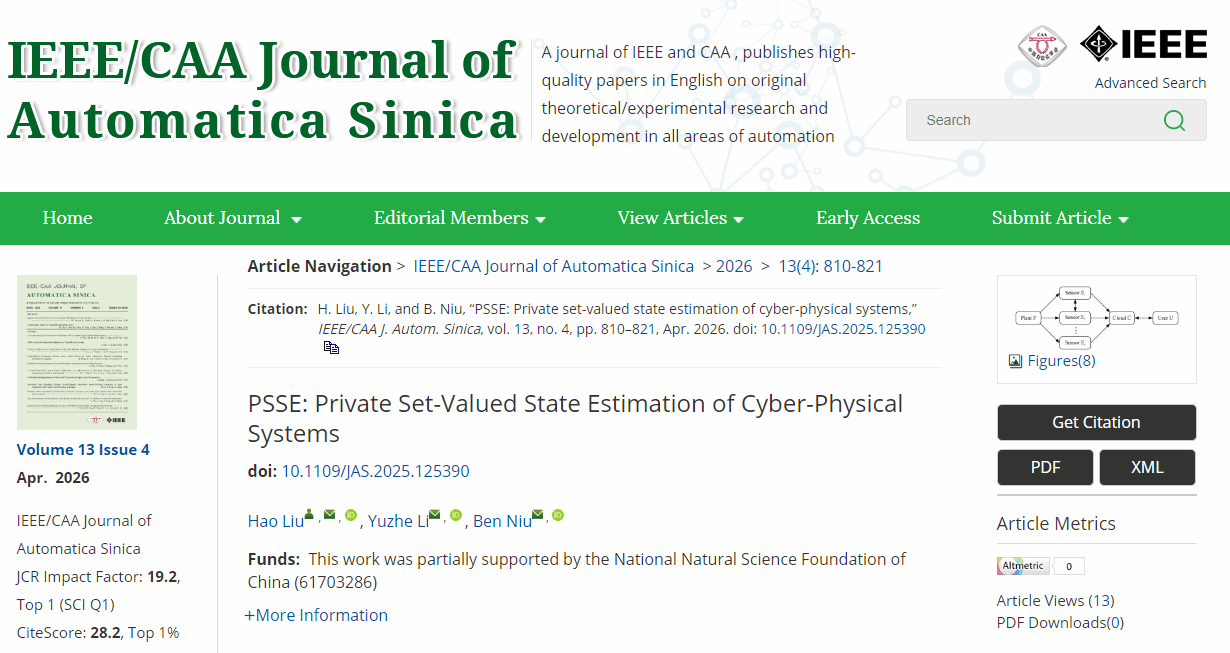 本网讯(通讯员 刘皓 朱丽娜)近日,我院教师刘皓研究成果在自动控制领域国际Top期刊《IEEE/CAA Journal of Automatica Sinica》发表。